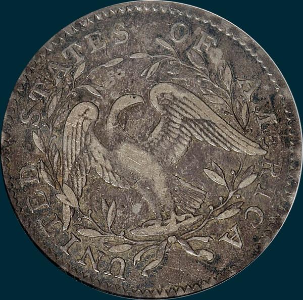 Variety Attribution: Obverse-Star 1 just pierces loop of curl. Star 2 and second curl are close together. A rough broken patch between date and star 15 is diagnostic of this obverse.