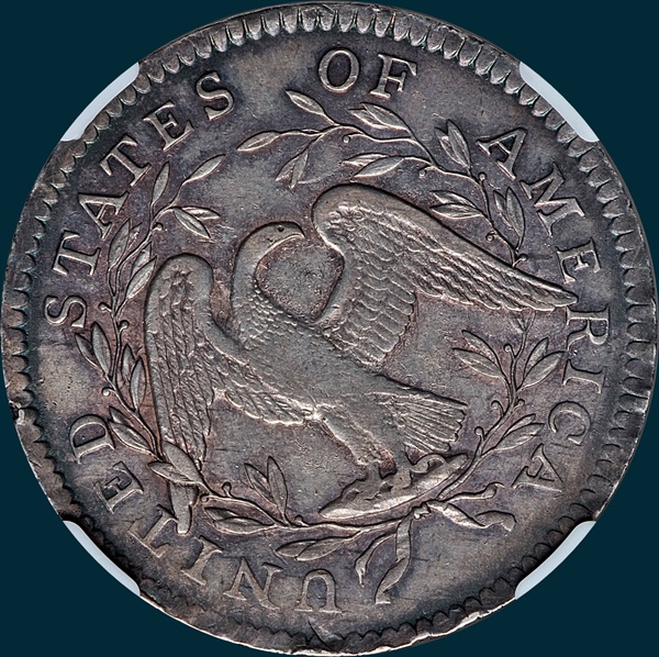 Variety Attribution: Obverse-Star 1 extends entirely through a tight lower curl. Star 2 touches second curl above end. Star 15 1/4 mm. from end of bust. Date is 8 3/4 mm., well centered and evenly spaced. On all observed specimens a rough lumpy die break below star 1, runs up between milling and stars on left. Some show a faint crack at top of LIBERTY. Star 6 shows signs of recutting. UNITED is clash marked under star 8 and LIBE of LIBERTY and an additional die crack is from milling to star 7.