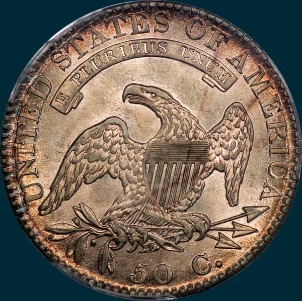 O-104: Reverse- 50C is 2 1/4 mm. with well formed figures and 5 canted sharply to right. Arrow to A is slightly over 1/2 mm.