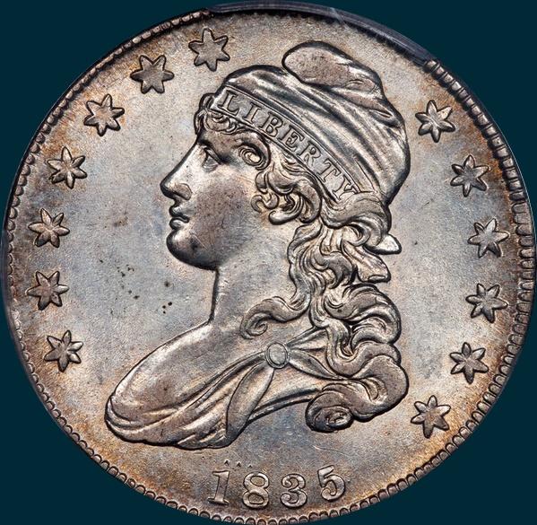 Decent 1835's are not very common to begin with, and this R1 is not very common in grades above XF. There may be just a single MS65 at the top followed by a group of lower MS coins many of which have not appeared for sale in a long time. Problem free AU's seem to be tough and do not appear frequently.